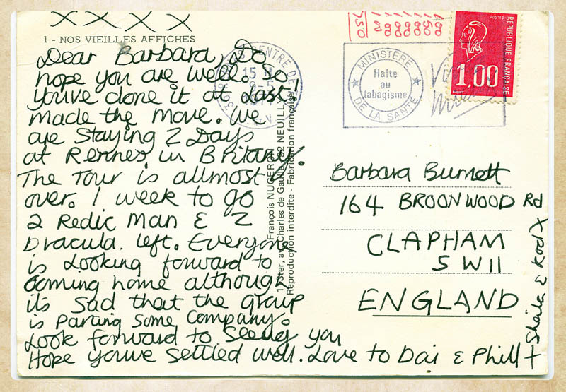 We perform at the Palace Theatre in Nice, it’s a short walk to a small hotel which is a short walk to a pebble beach and a short walk to the hills behind the hotel which happens to be the red light district. Pretty prozzies in white thigh-high boots sending out signals; the boys linger ……. the tour ends in Avignon, we are bushed.